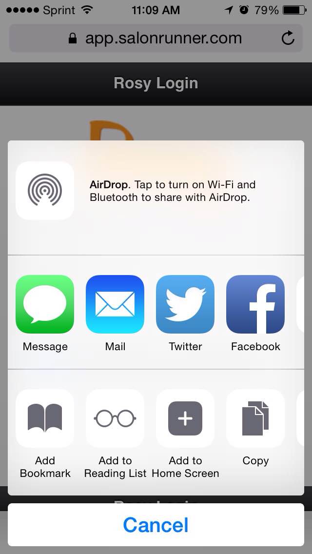 Step 3: On the Rosy login page, tap the share icon in Safari.